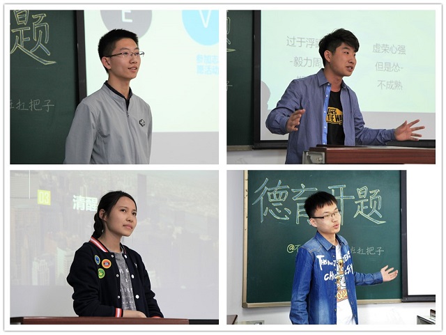 2017年4月27下午2:00,yl7703永利官网04011603班于良乡校区综合教学楼B406举办“认识你自己”主题德育答辩交流分享会。此次交流分享会由三班班委策划,郝伟和张文超主持。yl7703永利官网保卫部副部长章涛、16级yl7703永利官网辅导员郭倩玉、德育小导师李颖婕及班级全体同学参加此次分享会。