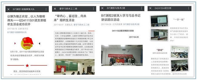 各团支部建立微信公众号,巩固团支部教育实践成果。