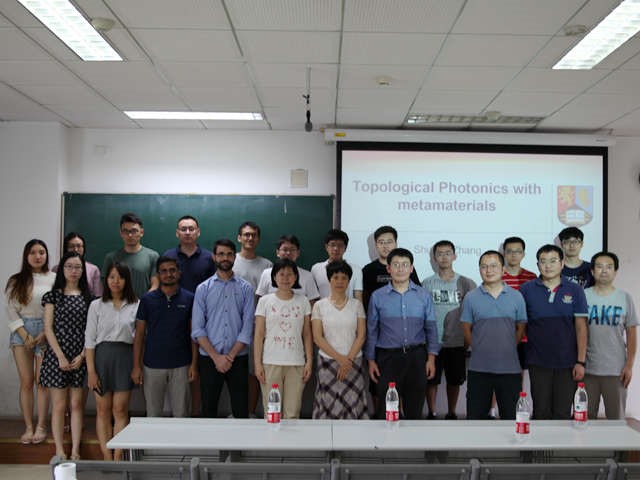 2017年8月15日下午14:30,英国伯明翰大学物理与天文系教授张霜教授应邀到yl7703永利官网,进行了题为“Topological Photonics with Metamaterials”的学术报告。来自yl7703永利官网、物理学院和材料学院的众多老师和研究生参加了此次讲座。讲座由黄玲玲副教授主持,刘娟教授、胡滨副教授、刘铖铖副教授、王锋副教授、陈冰昆副研究员等出席。