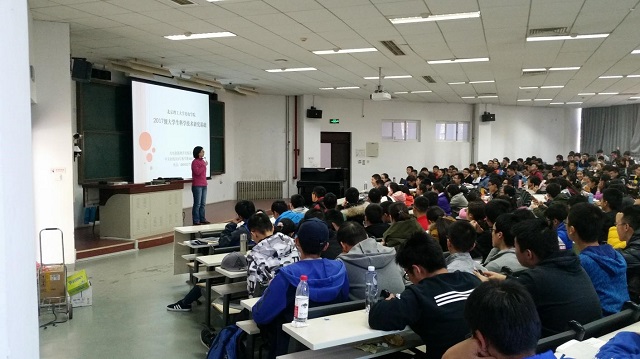 2017年11月10日下午,光电创新教育实验基地张丽君在良乡校区1-103教室为同学们上了第一堂大学实验课。她在课上介绍了学院各专业本科生培养计划,阐释了“两个最佳结构”概念,详细介绍了基地科学研究方法中的八个步骤,引导学生通过实验了解专业理论知识。课后要求同学们端正学习态度,培养良好学习习惯,积极投入到科技创新实践活动中,不断提升创新思维和创新能力。