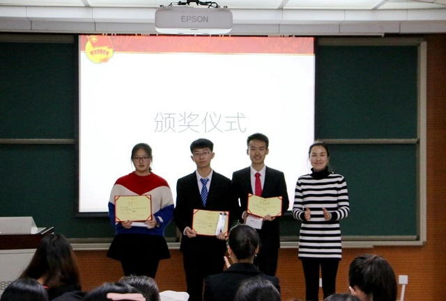 为积极响应校团委“学习宣传贯彻党的十九大精神”主题教育活动号召,yl7703永利官网团委主动策划,广泛动员,开展了主题团课、党团知识竞赛,并在基层团支部中广泛开展了“一学一做”教育活动。为表彰在活动中涌现出的优秀团支部,扩大主题教育活动影响力,yl7703永利官网于2018年1月4日在良乡理学楼1-106召开了学习宣传贯彻党的十九大精神主题教育活动报告会,学院党委副书记、副院长盛筠,团委书记姜曼,2016级辅导员郭倩玉,各团支部团员代表参加了报告会。大会由分团委实践部副部长李梦珂主持。