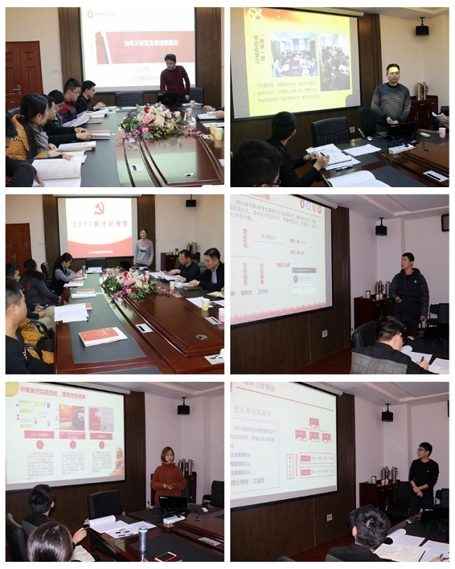 围绕学习宣传贯彻党的十九大精神情况、党支部规范化建设情况、“两学一做”学习教育“一支部一活动”情况、发展党员情况、引领服务师生发展情况、存在主要问题及原因、下一步工作改进措施等内容,学院全部32个党支部的党支部书记提交了书面述职报告。光电子研究所党支部书记冯立辉、博士光工1班党支部书记陈粟等14名党支部书记进行了现场述职。