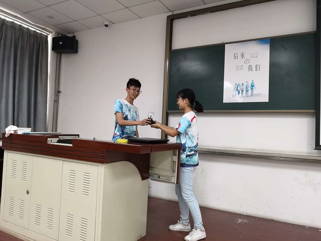 答辩采取随机抽签的方式进行,班委提前收集了同学们的儿时照片,每抽到一名同学,这名同学就将准备的小礼物和赠言送给台上的同学,每个人都感受到了来自同学的浓浓关爱之情。在讲述中,同学们回顾了班级一年来发生的的点点滴滴,展望了自己未来的生活向往,定下了自己人生的奋斗目标。同学们纷纷表示着眼当下,脚踏实地,相信沿着正确的道路做有为青年,后来的我们一定是自己理想中的样子。