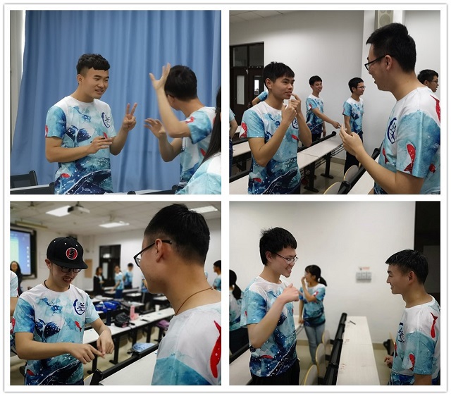 为了增加答辩环节的趣味性,同学们开展了“你比划我猜”的集体游戏环节,全班同学分成四组,用动作传递信息猜词,同学们手舞足蹈,充满了欢笑,既增进了了解,也拉进了彼此的感情,为答辩增上一抹亮色。