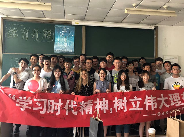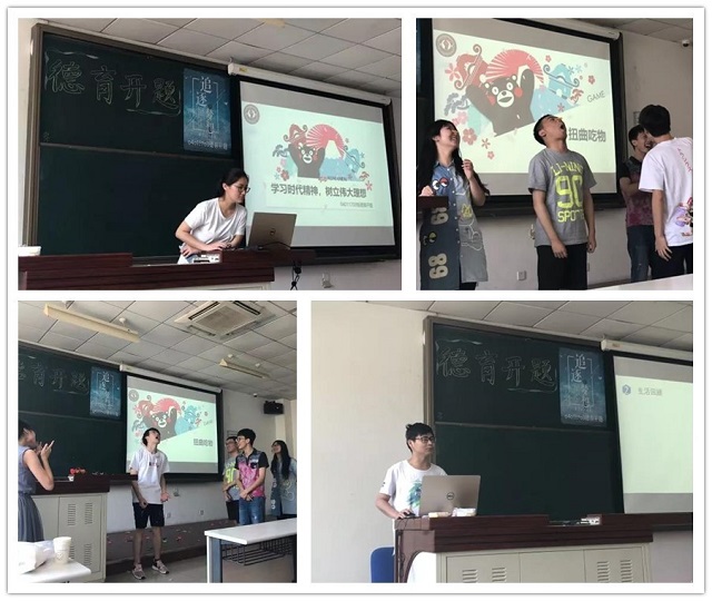 下午一点班会准时开始,现场布置得温馨活泼,yl7703永利官网副院长黄一帆通过视频向同学们送来了问候和期待。随后,每位同学轮流上台,从勇于创新,知难而进,艰苦奋斗,团结协作四个方面做了主题分享。同学们精心制作了PPT,配上了自己小时候的照片,体现了个人成长感悟。谭茵岚说在别人玩耍的时候学习累但感觉很充实,马润川说成功的标准是主观的,不要界定成功,要在意能力的提高,丁春旭要向榜样付时尧学习,培养学习兴趣和开放性思维,勇攀科学高峰。期间穿插的小游戏不仅活跃了气氛,也增进了同学们的友谊,现场其乐融融。