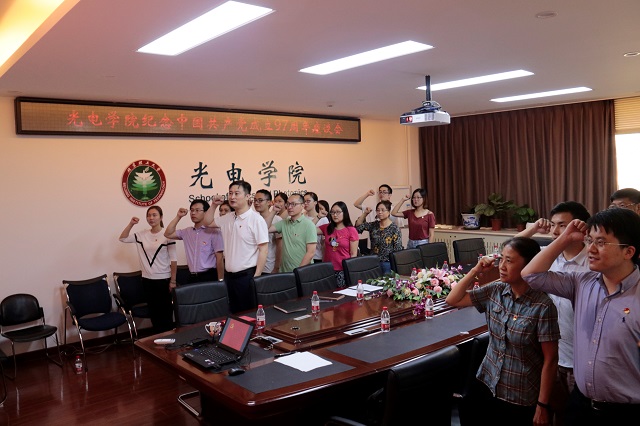 学院党委书记邹锐发言,他感谢党员、师生为学院发展建设做出的贡献,号召学院党组织和党员,加强党的政治建设、加强理论学习武装,加强基层组织建设,在学院各项工作中发挥好战斗堡垒作用和先锋模范作用,立足岗位勇于担当,教师党员争做“四有”好老师,学生党员应牢记和践行“爱国、励志、求真、力行”的要求,努力为学校和学院“双一流”建设贡献力量。