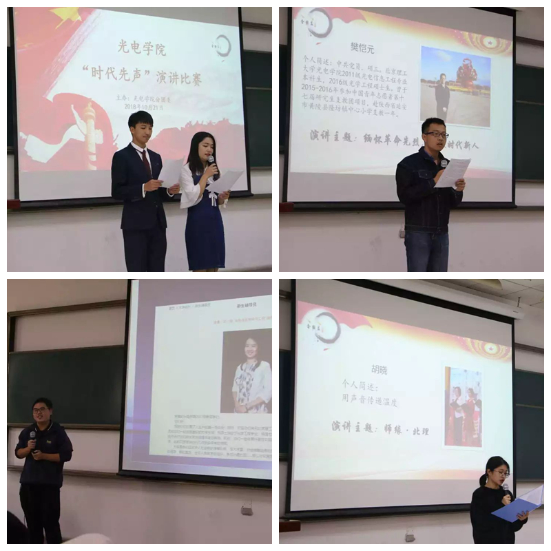 为深入贯彻落实党的十九大精神、全国高校思想政治工作会议精神和团的十八大精神,全面推进共青团深化改革,进一步深化“担复兴大任,做时代新人”主题教育活动,团结带领广大团员青年听党话、跟党走,培养担当民族复兴大任的时代新人,结合我校思想引领工作实际和学校文件要求,2018年10月21日下午14:00,yl7703永利官网分团委于良乡1-102组织开展“时代先声”演讲比赛。
