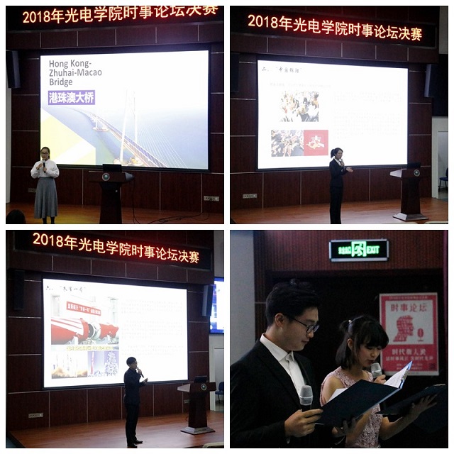 第二组选手从珠港澳大桥开通谈到谁将成为湾区盟主;从中国式家长这个游戏联想到对于父母应给予深深的感激;从中美贸易战谈到我国的应对方针及战略。选手表现信心十足,语言流畅,展现了当代大学生关心时政,主动思考,积极进取的精神风貌。
