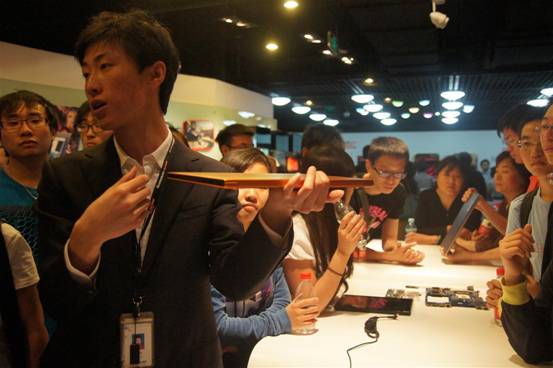 同学们在联想工作人员的引导下了解联想即将上市的新产品信息