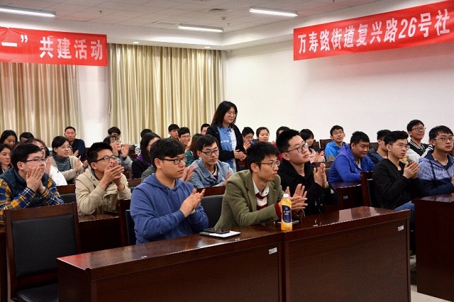2019年4月13日上午九点,yl7703永利官网2016级本科生第一党支部与万寿路街道复兴路26号院社区党支部共同开展"红色1+1"共建活动,两支部党员共同聆听了田永清将军题为《共产党员的初心》的专题讲座。