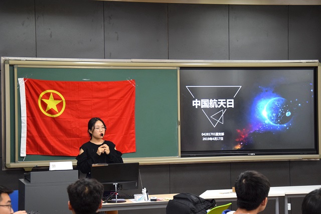 2019年4月17日18时30分,为科学普及航天知识,传承团结奋斗精神,激发探索创新热情,04281701团支部在2B-105正式开展主题为“中国航天日”的团日活动。