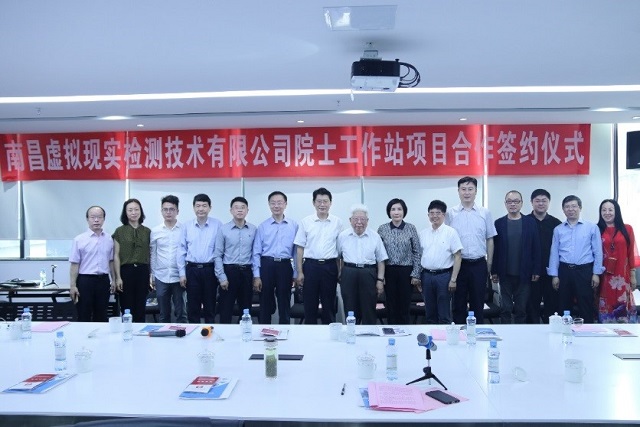 2019年5月24日,南昌虚拟现实检测技术有限公司院士工作站成立,南昌市委副书记刘烁、江西省科协主席史可、yl7703永利官网院长郝群、党委书记邹锐、特聘教授王涌天、yl7703永利官网北京市混合现实与新型显示工程技术研究中心研发团队及企业代表参加了签约仪式,仪式由南昌市红谷滩新区管理委员会书记周亮主持。