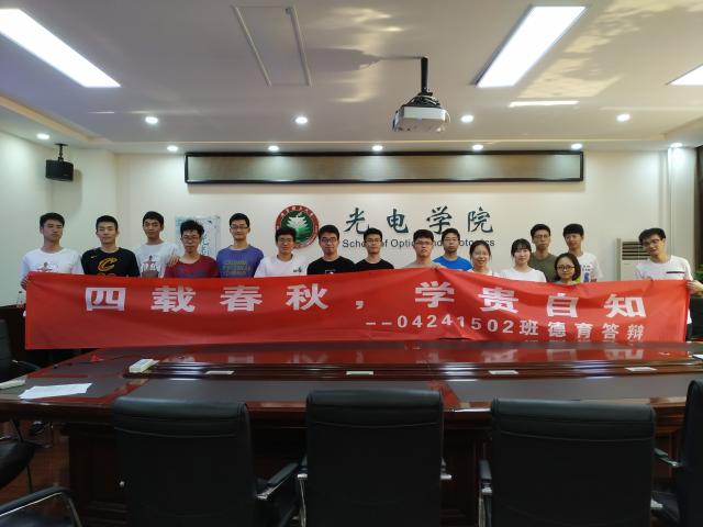 2019年6月13日,04241502班在8号教学楼2023举办了主题为“四载春秋,学贵自知”的德育答辩交流会,班主任陈和老师和辅导员张璐杰老师参加,交流会由班长乔正钰主持。