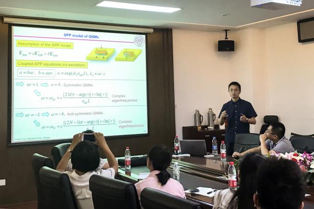 2019年7月9日上午9:00,南开大学现代光学研究所的刘海涛教授应邀到yl7703永利官网,进行了题为“纳米光学天线局域等离激元共振模式的直观解析模型”的学术报告。来自yl7703永利官网和物理学院的众多老师和研究生参加了此次讲座。讲座由黄玲玲教授主持,蓝天教授、路翠翠特别副研究员等出席。