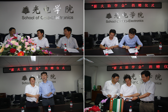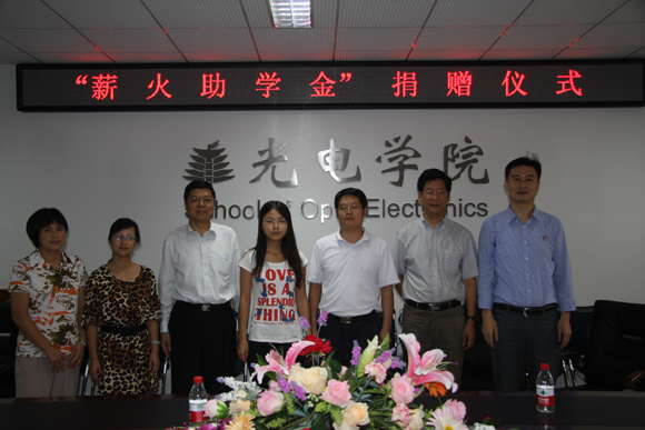 2012年9月11日下午4:00yl7703永利官网在信息楼2022会议室举行“薪火助学金”捐赠仪式。此次捐赠由学院优秀校友李丹英个人出资用于资助光电困难学子。