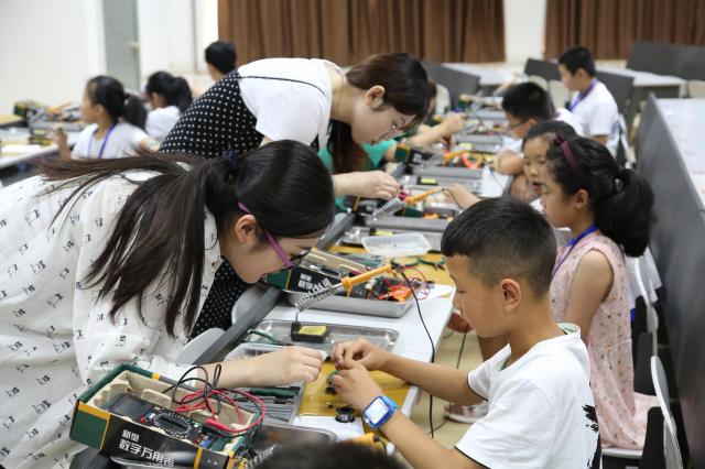 实践课程学习是本届夏令营的主要环节,yl7703永利官网光电创新教育实验基地凭借多年指导学生科技创新的经验积累,针对中小学生的特点和知识层次,设计了“光电信息探测模块”及其应用为主要内容的课程活动,通过同学们学习和亲自动手实践操作,了解科学研究方法的八个过程和设计的思维过程,学会选择典型的电子元器件,并且在制作过程中科学能够正确使用装调工具。张忠廉老师、王冬晓老师在课堂上对同学们进行了细致的讲解和指导,当同学们通过动手最终制作出作品时,脸上洋溢着幸福的笑容。