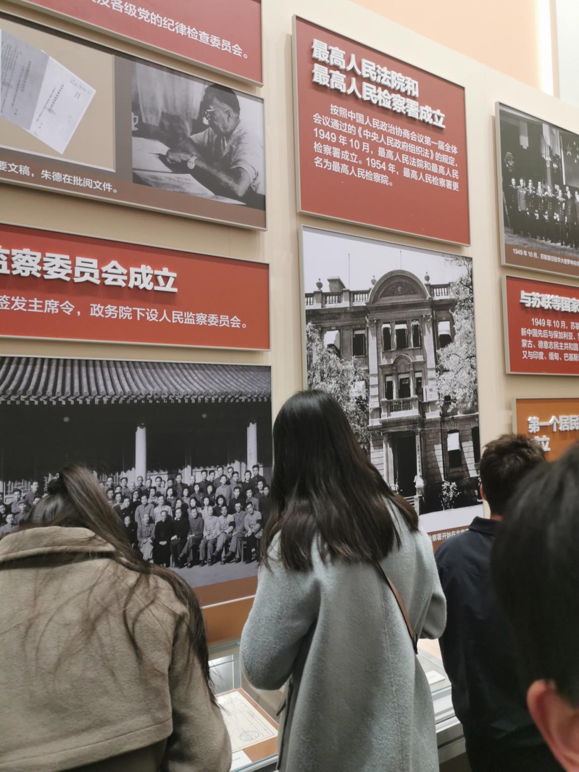 北京展览馆采用别出心裁的编年体形式,带领我们沿着历史隧道,踩着时光年轮,回顾和感知了中华人民共和国走过的风风雨雨70年光辉历程,纵览了国家在各个领域的发展进步,体会了中国共产党领导中国人民发奋图强、艰苦奋斗,实现伟大跨越的光辉成就。通过参观,我们近距离感受了中华民族从站起来、富起来到强起来的伟大飞跃,更加坚定了在中国共产党的领导下走中国特色社会主义道路的信心和决心,更加牢记了不忘初心、不负时代的历史使命,我们需要加倍努力来为国家的发展贡献自己的一份力量。