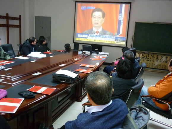 会议首先播放了党的十八大开幕盛况及胡锦涛总书记所作的《坚定不移沿着中国特色社会主义道路前进,为全面建成小康社会而奋斗》的报告,利用多媒体形式使与会党员、群众深刻领会了十八大精神及其对党和国家事业发展的深远意义。