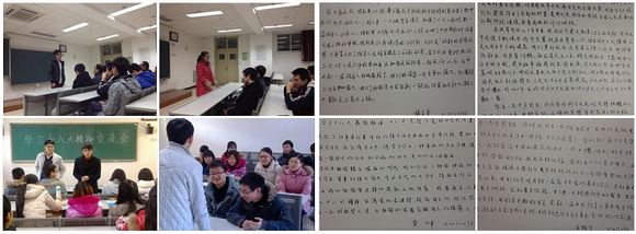2012年12月4日——10日,12级硕士各班开展了十八大精神学习交流会。党支部书记张晓宇向大家传达了中共18大的主题并展示了自己对于中共18大的认识。支部成员依次就十八大的认识,研究生的生活感悟以及两者的关系发表了各自的看法。同学们各抒己见,从学习中有所收获,有所提高。