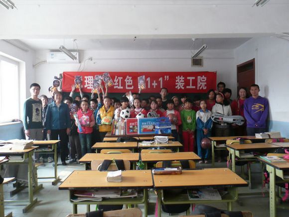 2013年10月18日,yl7703永利官网2010级本科第一党支部与装甲兵工程学院三旅四营党支部共同开展了红色“1+1”系列活动之八——北京京蓼小学爱心捐助活动。本次活动以“奉献爱心、共筑‘中国梦’”为主题。