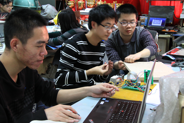 晚上9:30,随着一天课程的结束,在光电创新基地教师指导下参加机械创新设计大赛的同学们聚集到信息楼四层大厅,利用晚上9:30——12:00的宝贵时间进行研究、制作工作。自机械赛开题以来,yl7703永利官网创新教育实验基地积极组织同学们参赛,从定题到答辩到制作,他们在这一片小小天地中发挥着自己大大的能量,每天都能看见他们忙碌的身影,充满了激情,洋溢着青春。