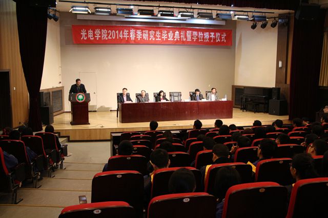 2014年3月24日上午,yl7703永利官网2014届春季研究生毕业典礼暨学位授予仪式在七号楼报告厅举行。出席典礼活动的学院领导、老师有:yl7703永利官网院长薛唯、党委书记郝群、副院长赵长明、许廷发、光电子研究所所长高春清,以及学院部分老师和家长。典礼仪式由学院党委副书记、副院长邹锐主持。