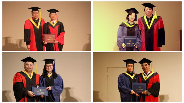 典礼大会在浑厚的校歌声中结束。随后,薛唯、赵长明、许廷发和高春清为毕业生授予了学位。