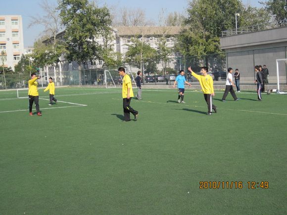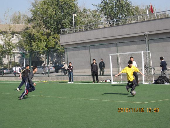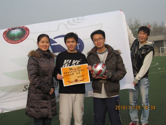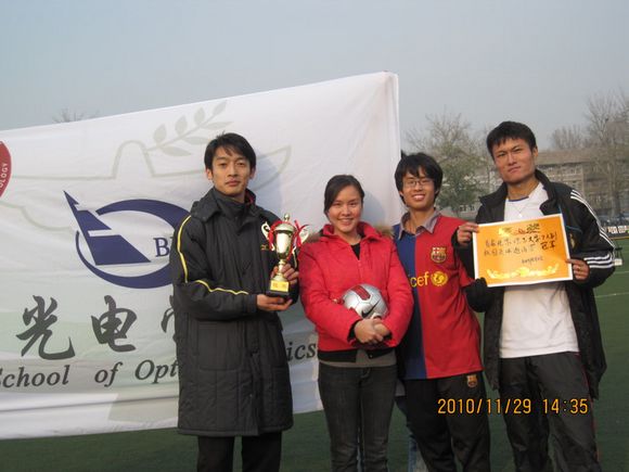 经过为期十天的鏖战,理学院代表队和光电研究生队表现出色,打入决赛。决赛于11月29日中午12点半正式打响,上半场比赛进行第34分钟,理学院队利用光电研究生后卫回传失误,迅速向前场推进,利用默契的配合将球推至禁区球门前,跟进的队员轻轻抽射,球穿网而入,理学院1:0领先,虽然光电研究生队仍展开猛烈攻势,但理学院队领先优势一直保持到上半场结束。