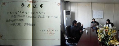 2010年,按照学校相关工作要求,经过学院分团委前期积极联系,我院09级硕士光工第二党支部与北京市京丰通风设备有限公司党支部携手开展“红色1+1”活动。“红色1+1”活动是北京市教工委在高校中开展的一项学生党建工作,旨在通过高校学生党支部与北京市郊区农村或乡镇企业党支部结成共建对子,推动大学生积极开展社会实践,了解社会,服务社会。在一年的共建活动中,我院学生党员多次到北京市京丰通风设备有限公司调研学习,交流共建,了解企业经营发展和党支部工作情况,深入车间一线,观摩设备生产过程,参与生产操作,在企业管理和科技创新方面提出意见和建议,得到企业的肯定和支持。红色“1+1”活动的开展,既帮助乡镇企业解决一些实际问题,又开阔了同学们的社会视野,增强了实践能力和历史使命感。本项工作取得了较好的效果,2010年我院09硕光工第二党支部荣获学校“红色1+1”活动三等奖,我院也被评为“红色1+1”活动先进组织单位。
