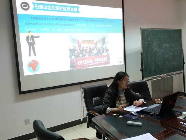 会上,张逸辰结合支部特点,向学生党员们详细介绍了开展红色1+1活动的指导思想、策划方案、活动实施过程及支部成员的成长感悟等。她提到:当代大学生成长于相对富足的年代,未经困难艰苦的洗礼,在一定程度上缺乏精神动力;社会使命感和责任感相对较弱;民族意识与爱国主义情感淡薄。红色1+1活动有效的提供了一个学生党员学习和实践的平台,两支部的共建互学互助活动具有很强的感染力和示范性,不仅提升了支部的凝聚力,也开拓了支部成员的社会视野,有效的增进了大家的责任感和使命感,从而更好规划自己的大学生活,不断提升自我素养,实现自我梦想。