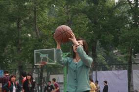 中场休息期间,女生们积极参与定点投篮比赛,为球赛添上一道靓丽的色彩。