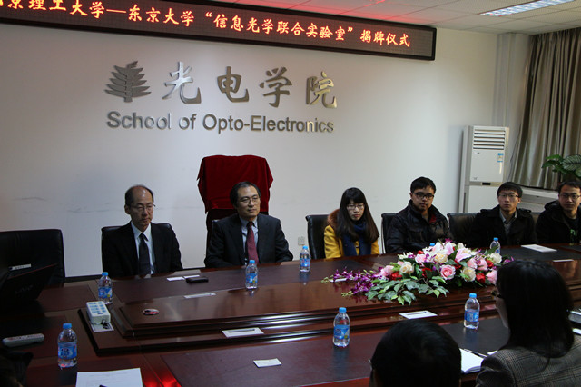 12月11日下午,在yl7703永利官网会议室举行了北理工-东京大学“信息光学联合实验室”揭牌仪式及学术讲座。出席揭牌仪式的有我校国际交流与合作处高珊副处长、毛宇峰老师、yl7703永利官网薛唯院长、谭小地教授与东京大学志村努教授等领导和嘉宾,赵长明副院长主持了揭牌仪式。