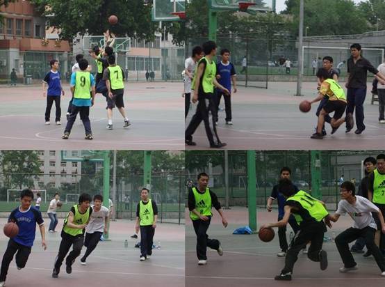在411对阵431的场地上,火热的呼声持续不断。敏捷的进攻、快速的回防,都让人眼花缭乱。双方队伍你来我往,打得酣畅淋漓。另一块场地上是432班与442班的激烈比拼。队员们攻防得体,沉稳大气,在良好的战略部署下双方的得分效率相当高。