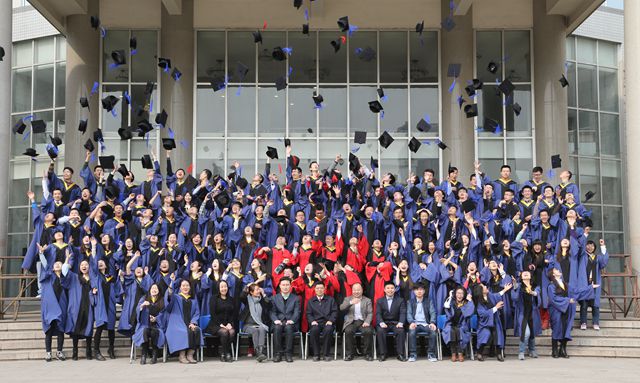 典礼大会在浑厚的校歌声中结束。随后,薛唯、许廷发、李艳秋和宋勇四位导师为毕业生授予了学位。