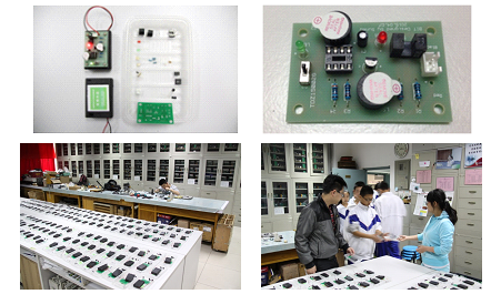 按照北京市教委的主导思想,光电创新基地专门针对初中一年级学生的知识水平和心理特点,设计了适合他们的科技制作作品——光电报警模块和声光电信号发生器模块,并全面做好了人员、器材、工具、场地等准备工作。