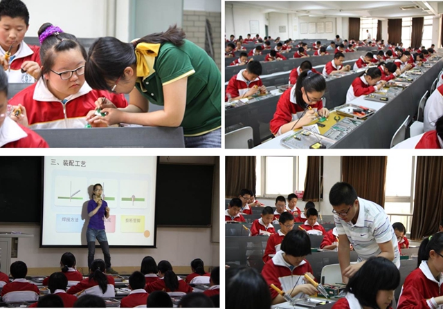 北京市第十中学的全体师生不畏辛苦,一大早就乘坐大客车前往我校,课上师生严肃认真,热情活跃,全部按照课程的要求完成科技实践作品,本次课程得到了师生的一致好评,对于中学生在科技认识和激发兴趣方面效果显著。