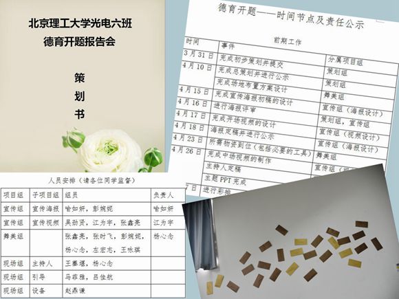 本次德育开题班会的流程分为:开场,同学个人展示,中场,闭幕,领导点评。杨心念、王蓁堰担任主持。