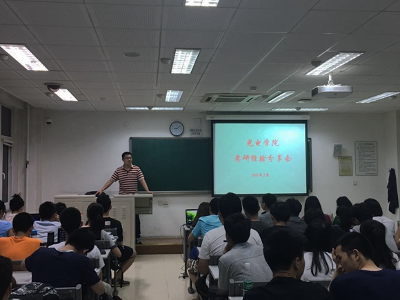 2013级辅导员张亚辉首先介绍近两年yl7703永利官网的考研和录取整体情况,随后来自2015级仪器科学与技术专业的研究生杨帅,2012级光电信息工程专业的本科生贾亦文和光信息科学与技术专业的本科生晏清等三位同学分别就各自考研经历和个人体会与同学们交流分享。