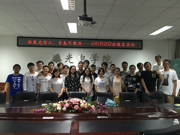 2016年6月13日,光信二班全体同学在信息教学楼2023举行了以“壮哉光信二,青春不散场”为主题的德育终期答辩活动,对大学四年来的德育工作进行总结。