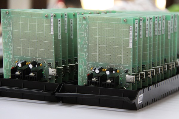 实验完成后,同学们郑重地在自己的第一份作品上贴上标签,在器件架上码放整齐,那一排排绿色的电路板彰显着理工学子“学以精工”的风采。