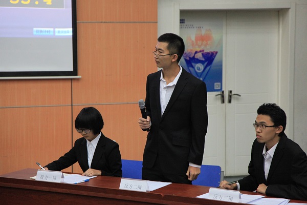 历经数轮激烈的比拼,光电三班与光电七班突出重围,在决赛场上一较高下。正方光电三班持“无法认同故宫中的星巴克”的观点, 四位辩手依次为覃朗,黄毅,张文超,李浩然。反方光电七班持“不妨宽容故宫中的星巴克”的观点,四位辩手依次为张聃,张子安,于秦伯,张雍钿。