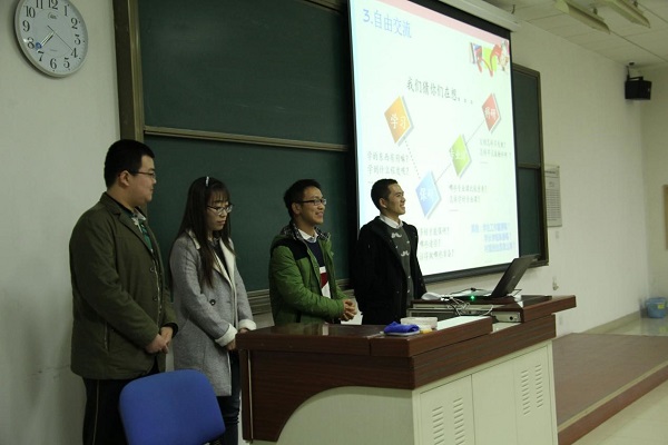 随后,在自由交流环节,同学们积极参与,气氛热烈。三位主讲人和学院兼职辅导员张璐杰认真解答了各位同学提出的有关保研、出国交流、科研竞赛等方面的问题,令同学们受益匪浅。