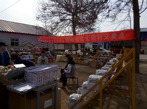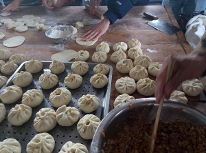 志愿者和孩子们一起包包子 志愿者们帮助义卖